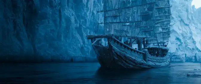 Финальная морская битва в воронке шторма — визуально мощная отсылка к древним представлениям о хаосе и конце света. Водоворот и «край света» как тема встречались в навигационных мифах и картах старых мореплавателей, где «край» был местом для легенд, монстров и бесповоротной гибели. Использование маэлстрёма в качестве центрального символа конфликта превращает финал в мифологическое испытание, где человеческие законы и блага вступают в противоречие с силами природы. Эта метафора перекликается с самой титульной фразой «На краю Света» и усиливает ощущение, что герои вступают в территорию, где действуют совсем другие правила.