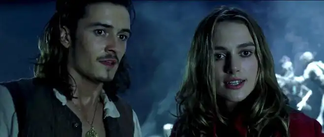 Любовный треугольник, в центре которого находятся Элизабет Суонн, Уилл Тернер и Джек Воробей, служит движущей силой сюжета и одновременно инструментом раскрытия характеров. Элизабет с её благородным происхождением и тягою к приключениям представляет мост между миром стабильности и миром риска. Её чувства к Уиллу основаны на глубоком уважении и семейной связи, а в отношении к Джеку проявляется восхищение кроющейся в нём свободой и загадкой. Это не привычная мелодраматическая дилемма, в которой героиня колеблется между двумя типажами; напротив, Элизабет постепенно осознаёт сложность собственной позиции, выбирая не столько между людьми, сколько между разными жизненными ценностями: безопасностью и рутиной на берегу или неопределённой, но притягательной свободой морских дорог. Взаимодействие Элизабет с Джеком побуждает её к личностному росту: она учится принимать ответственность, проявлять решимость и находить ресурсы внутри себя. С Уиллом же их отношения укрепляются через совместные испытания: доверие, преданность и готовность к самопожертвованию становятся основой их взаимного притяжения.