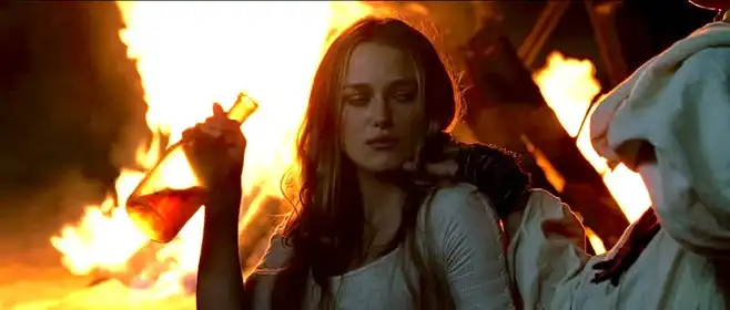 Элизабет Суон проходит одну из самых заметных трансформаций по линии «от приличий к свободе». В начале она — дочь губернатора, воспитанная в рамках общественных норм и ожиданий, символ порядочности и романтического идеала. Ее спасение Уиллом в детстве и найденный в тот момент медальон создают у нее скрытую связь с пиратским миром, которую она не осознает до начала событий. Ситуация, когда Элизабет оказывается похищенной и оказывается на борту Черной жемчужины, становится для нее рубежом взросления. Она перестает быть пассивным объектом, превращаясь в активную участницу событий: умение принимать решения, азарт и стремление к свободе проявляются в ее действиях. Элизабет учится обману, скрытности и смелости; ключевой момент — сцена, где она дерется и ведет переговоры с пиратами, показывая, что внутренне она уже не та, кто была в начале. Ее выбор — не просто личная любовь к Уиллу, но желание самой выбирать свою судьбу, отказаться от уз исчерпанных социальных норм ради своих чувств и ценностей.