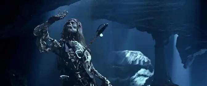 Кадровые решения и композиция сцен иногда содержат кинематографические реминисценции классических приключенческих фильмов. Камера, освещение и монтаж в сцена с проклятыми пиратами под луной, когда они превращаются в скелетов, напоминают старые хоррор-фильмы и готическую эстетику, смешанную с приключенческим жанром. Это сочетание жанров — отсылка к традиции сочетания ужаса и авантюры, когда страх и азарт идут рука об руку, и делает проклятие визуально выразительным и запоминающимся.